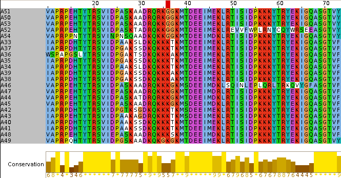 In the evolution vertebrates, we would like to know if the branch leading to the Teleost fishes (genes A50 to A54) in the serine/threonine-protein kinase PAK 2 gene was under positive selection or not. And if yes, which residues were under positive selection.